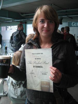 Da haben wir uns natürlich e die Guinness-Brauerei angeschaut. Und ich muss sagen, 15€ Eintritt ist leicht übertreiebn. Das Museum soll angeblich wie ein Pint gebaut sein, aber es ist halt einfach rund und aus Glas, naja das ist wohl der irische Optimismus... In diesem Glaskasten wurden einem dann die Zutaten und die Herrstellung gezeitgt. Abschließend konnte man sich sein kostenloses Probe-Exemplar selbst zapfen und es im 7.Stock bei einer Aussicht auf Dublin genießen *yumyum*